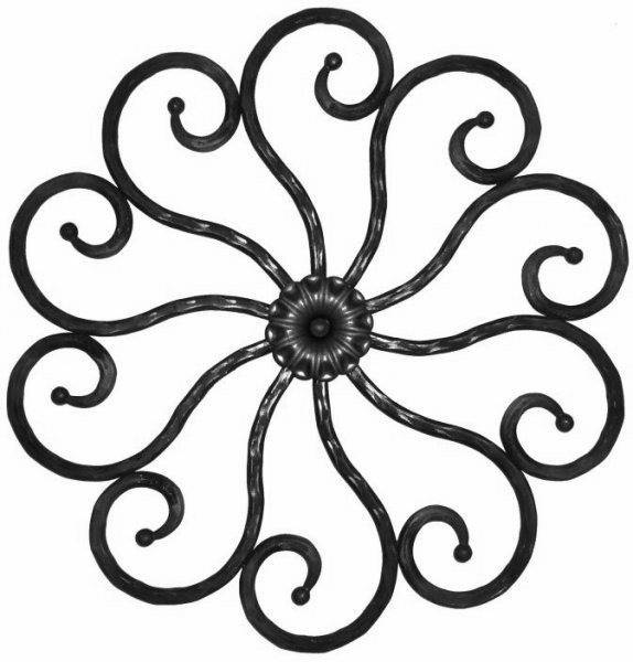 K3375H - kovářský ornament, ø 545 mm, materiál hladký profil 12 x 12 mm, hmotnost 5,35 kg.