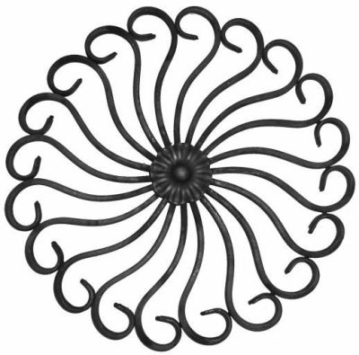 K3385H - kovářský ornament, ø 360 mm, materiál hladký profil 12 x 6 mm, hmotnost 2,65 kg.