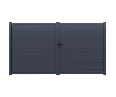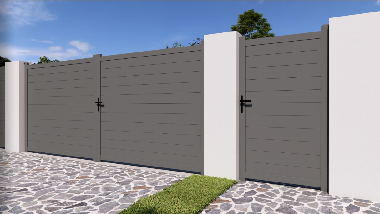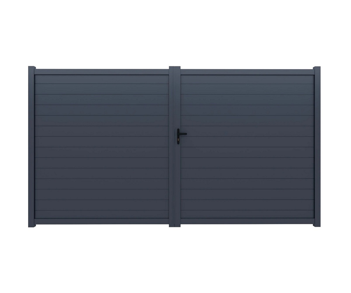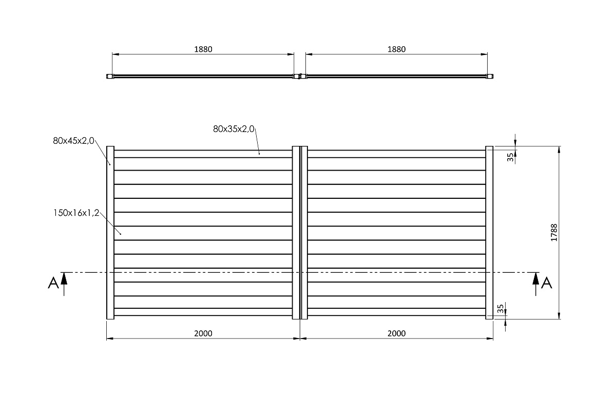 Křídlová brána, rozměr 4000 x 1788 mm, otevírání dovnitř / ven (volitelné). Konstrukce brány je vyrobená z hliníkové slitiny 6063-T5, která se běžně používá u exteriérových bránových a plotových systémů z důvodu vysoké pevnosti, tvarové stability a vynikající odolnosti proti korozi.