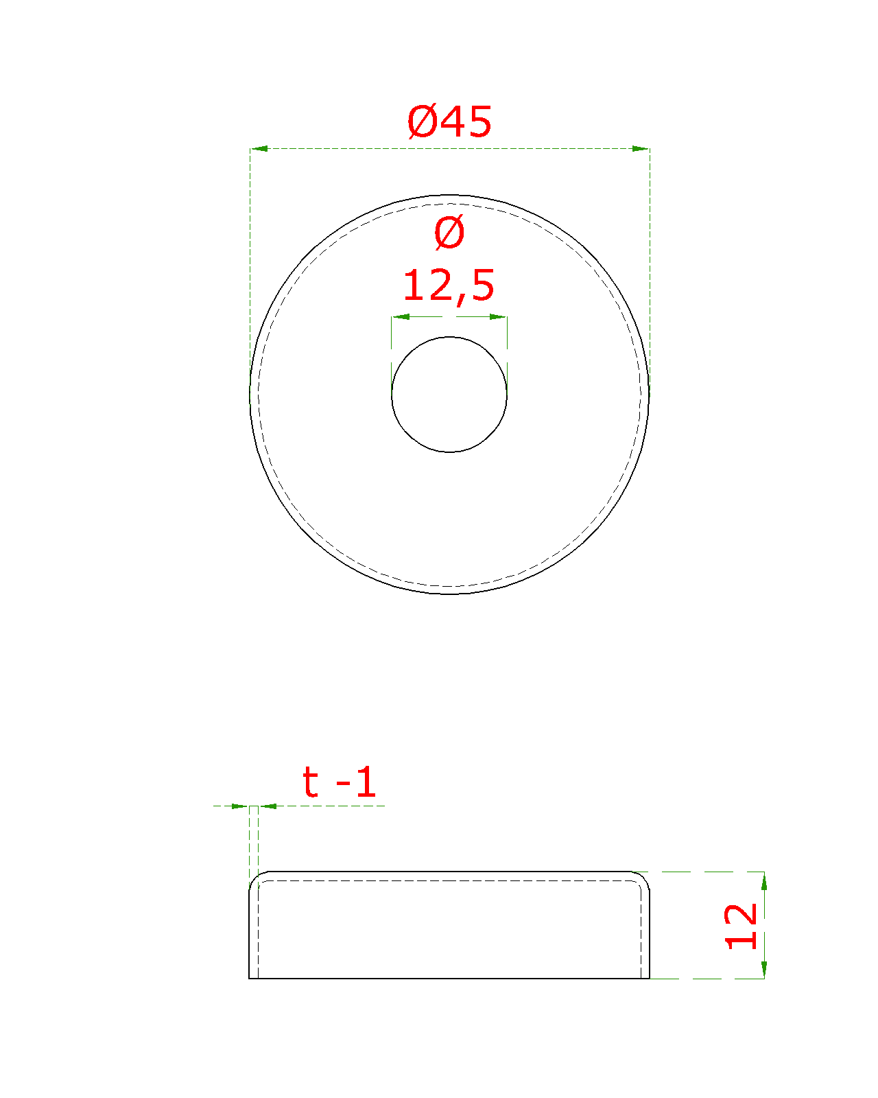 ø 45 mm, výška 12 mm