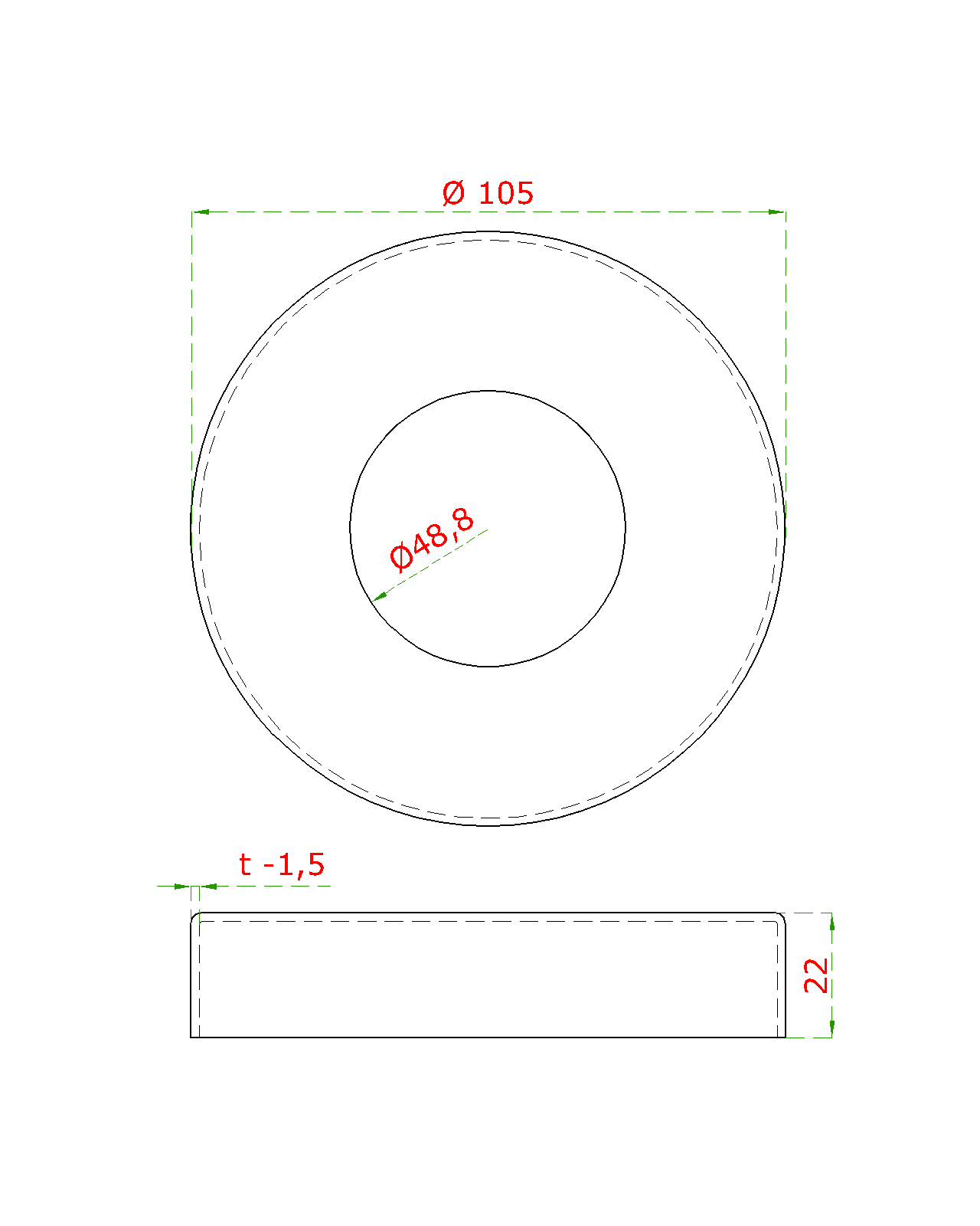 EB1-5535 - kryt příruby ø 105 mm, výška 22 mm, otvor na trubku ø 48,3 mm, broušená nerez K320 / AISI...Ukaž celý popis >