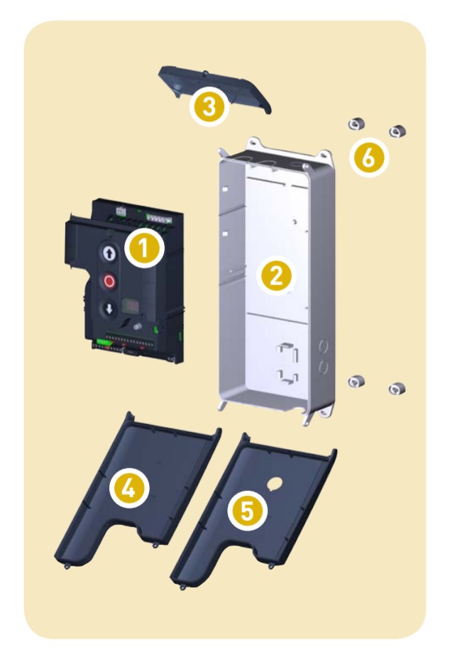 Část krytu - krabice - pouze víko na elektroniku GfA Elektromaten TS959, TS970, TS971. Na obrázku díl č. 3, 5 - malý a velký kryt s přípravou pro hlavní vypínač.