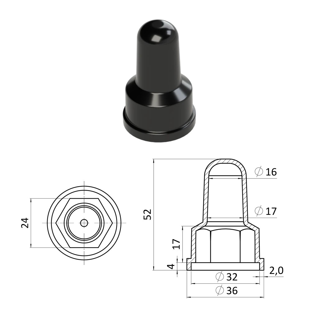 krytka na matice a šrouby M16, prodloužená, černá