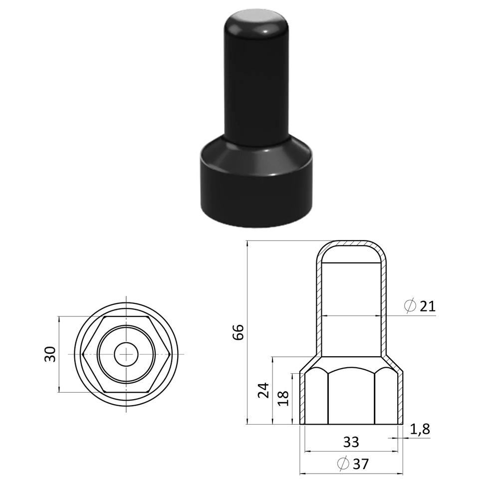 Prodloužená plastová krytka na matice a šrouby se závitem M20. Dodáváme v barvě černé RAL9005. ...Ukaž celý popis >