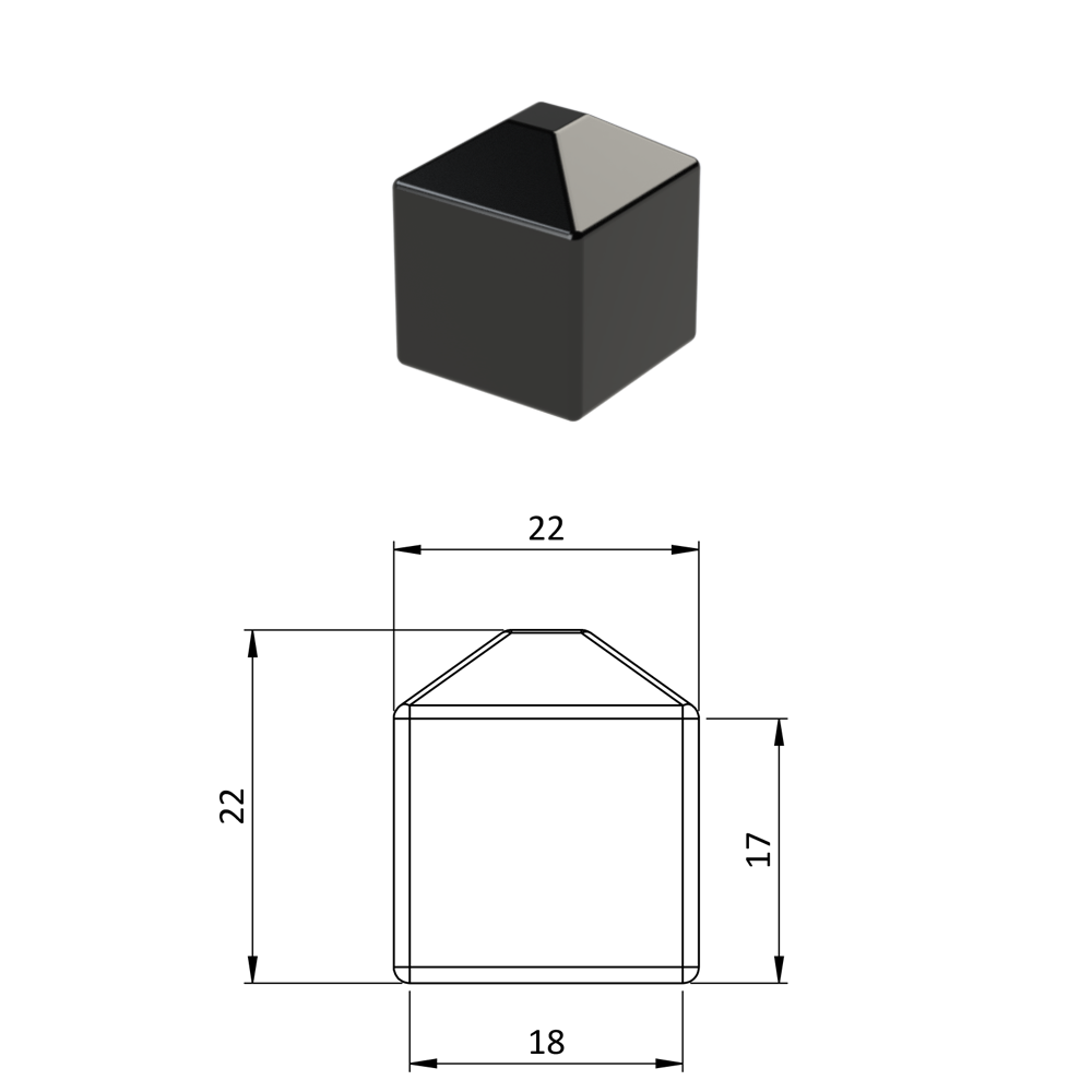Vnější krytka převlečná plastová, rozměr 18 x 18 mm, barva černá RAL9005.