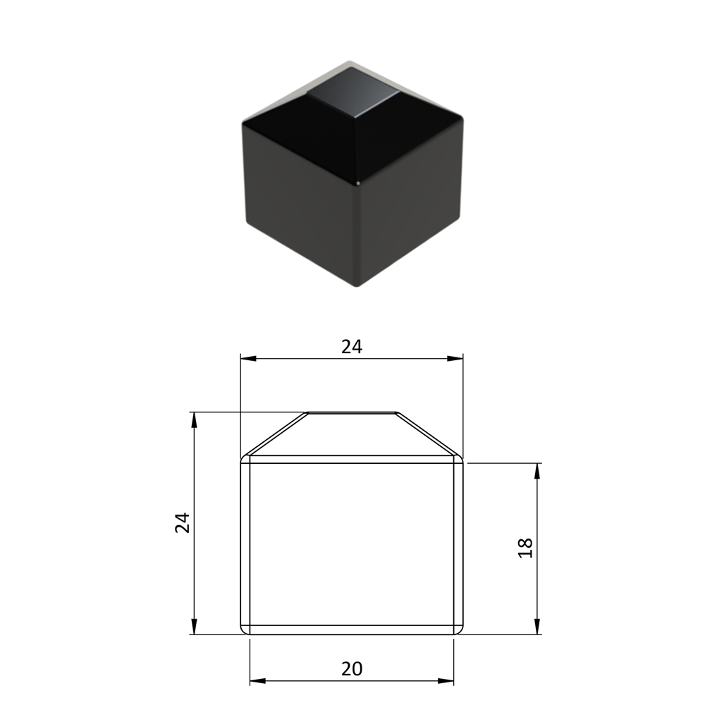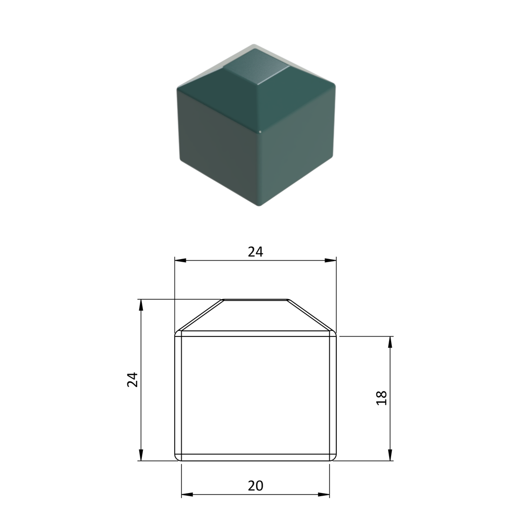 Vnější krytka převlečná plastová, rozměr 20 x 20 mm, barva černá RAL9005, antracit RAL716, zelená RAL 6005, šedá RAL7040.
