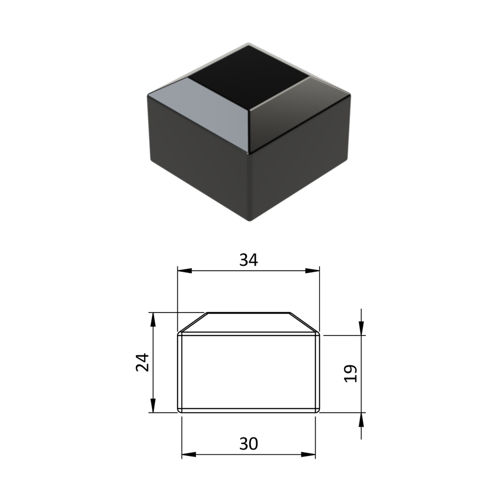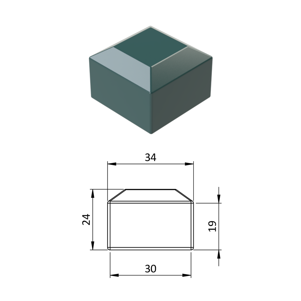 Vnější krytka převlečná plastová, rozměr 30 x 30 mm, barva černá RAL9005, antracit RAL7016, hnědá RAL8028, zelená RAL6005, šedá RAL7040.
