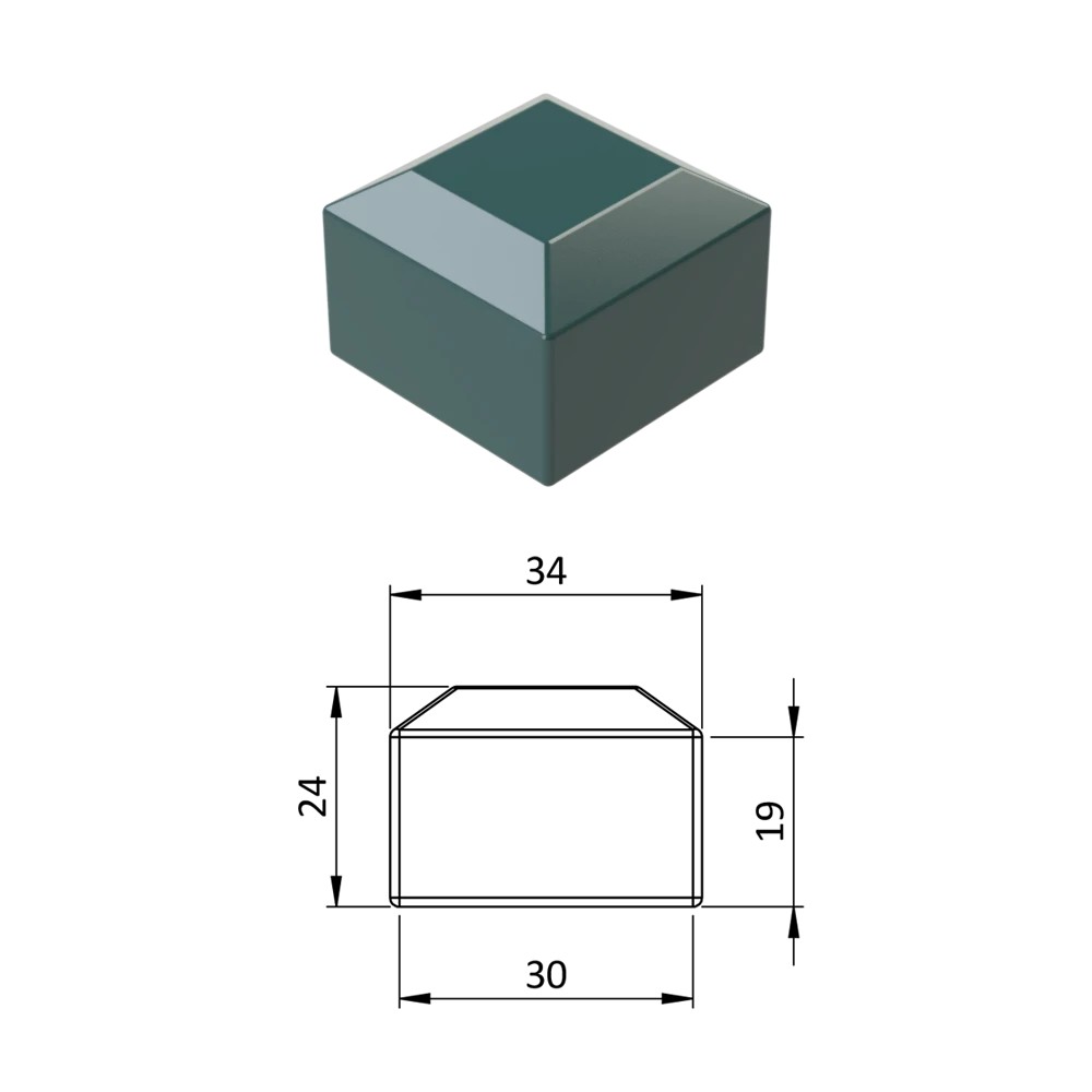 Vnější krytka převlečná plastová, rozměr 30 x 30 mm, barva černá RAL9005, antracit RAL7016, hnědá RAL8028, zelená RAL6005, šedá RAL7040.