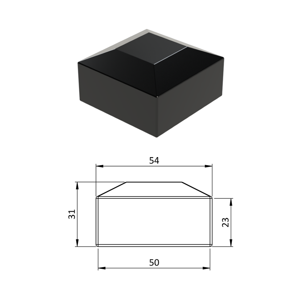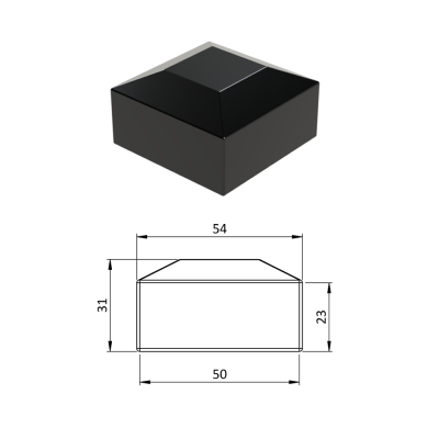 Vnější krytka převlečná plastová, rozměr 50 x 50 mm, barva černá RAL9005, antracit RAL7016, hnědá RAL8028, zelená RAL6005, šedá RAL7040.