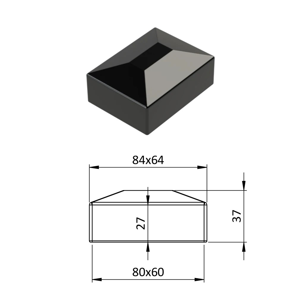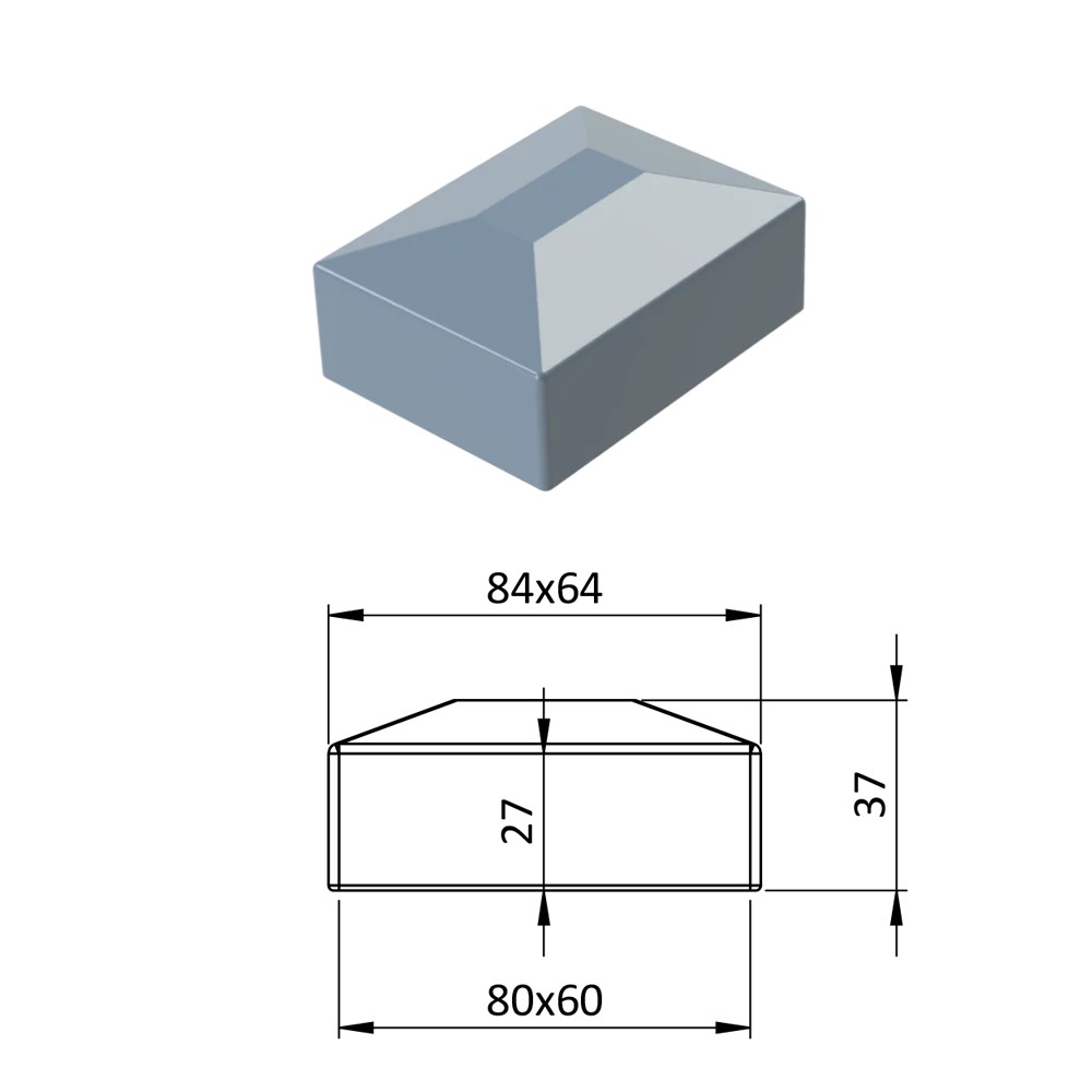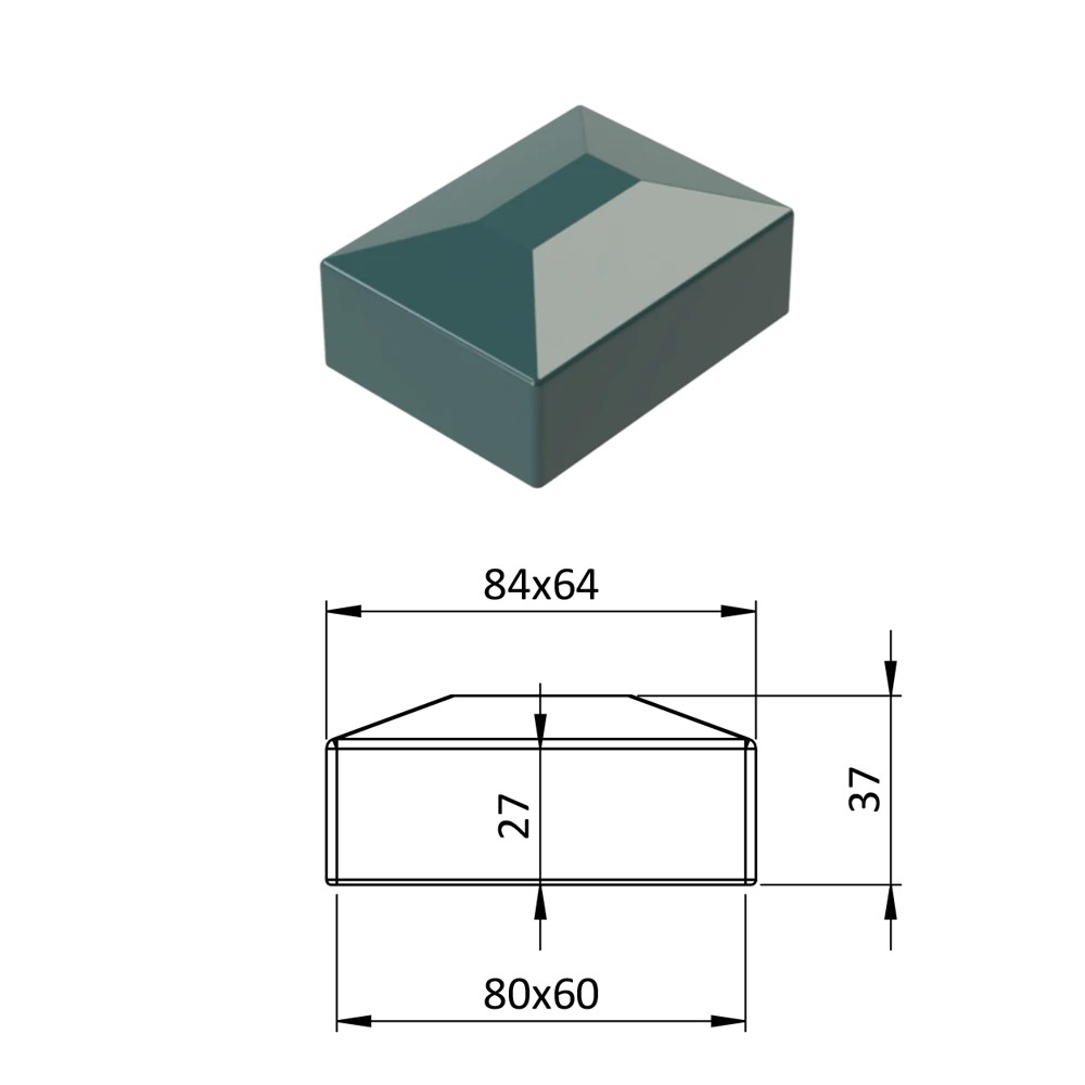 Vnější krytka převlečná plastová, rozměr 60 x 80 mm, barva černá RAL9005, zelená RAL6005, šedá RAL7040.
