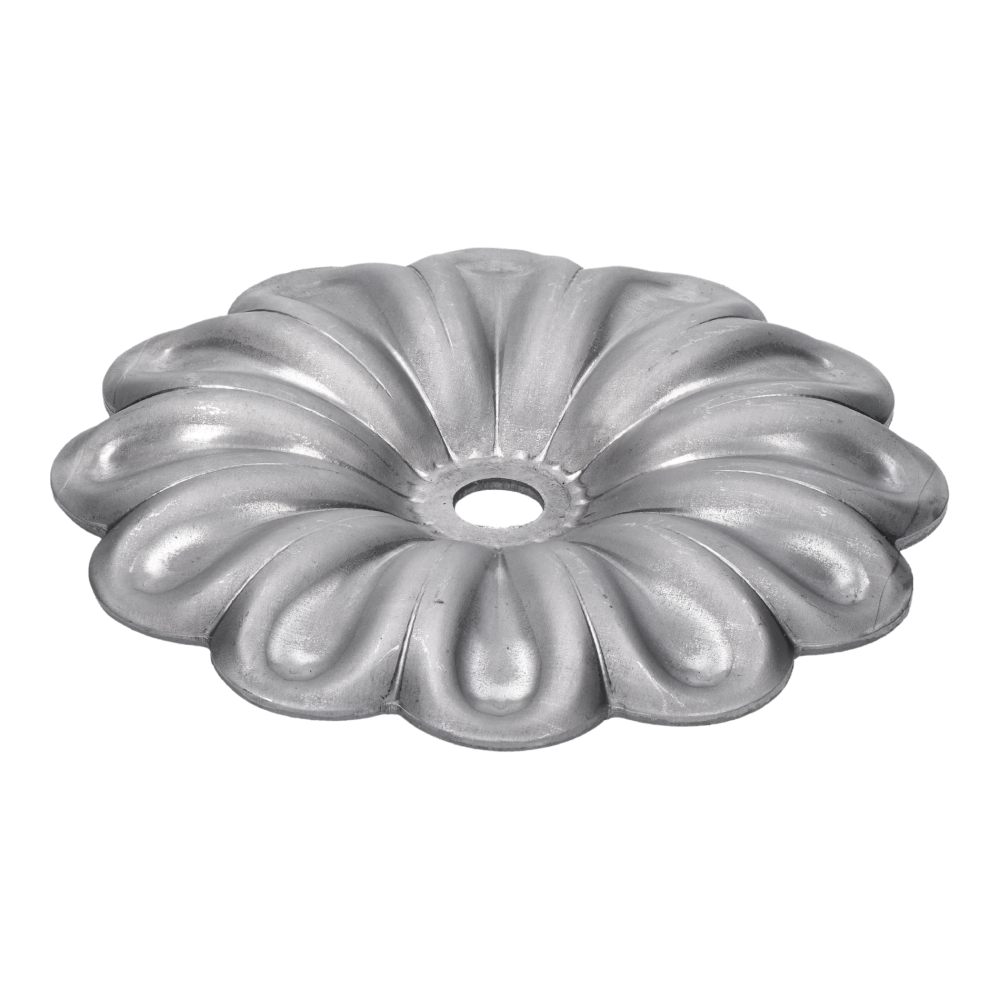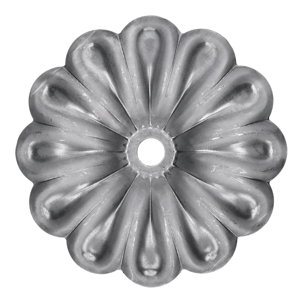 5-012 - kovaný polotovar - dekorace s motivem květu, ø 120 mm, otvor ø 12 mm, tl. 2 mm.