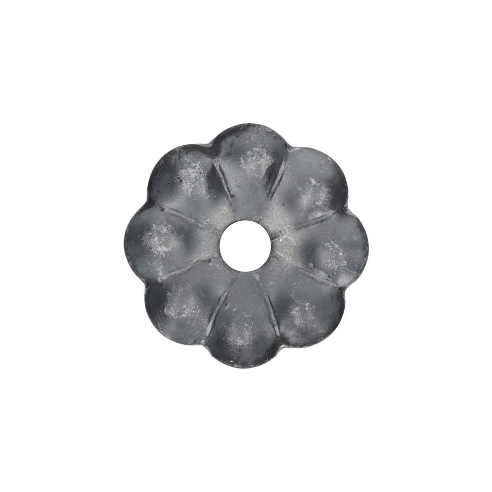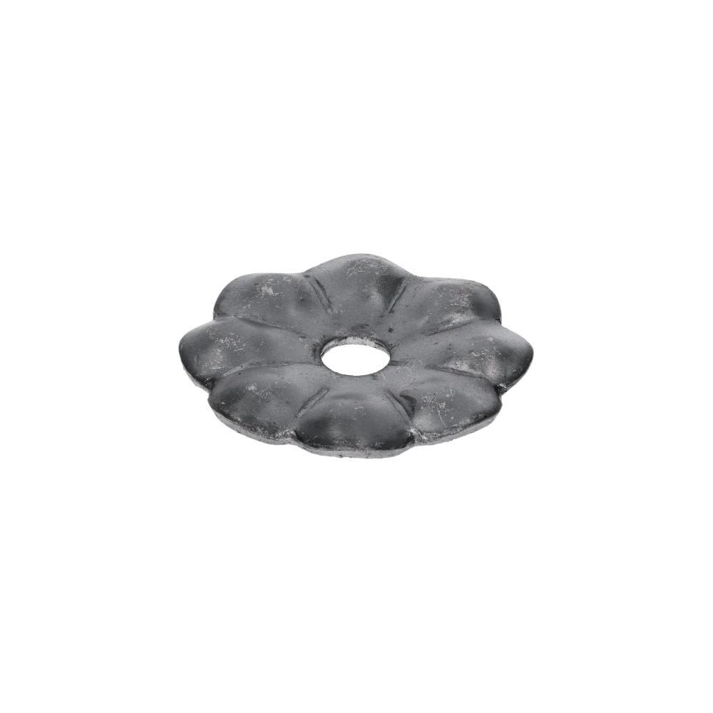 5-059 - kovaný polotovar - dekorace s motivem květu, ø 60 mm, otvor ø 10 mm, tl. 3 mm.