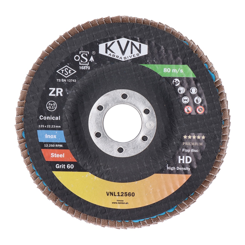 Lamelové brusné kotouče na ocel a nerez, kónické, průměr 125 mm, otvor 22,2 mm, EXTRA HRUBÉ PREMIUM, zrno P60, zirkon.