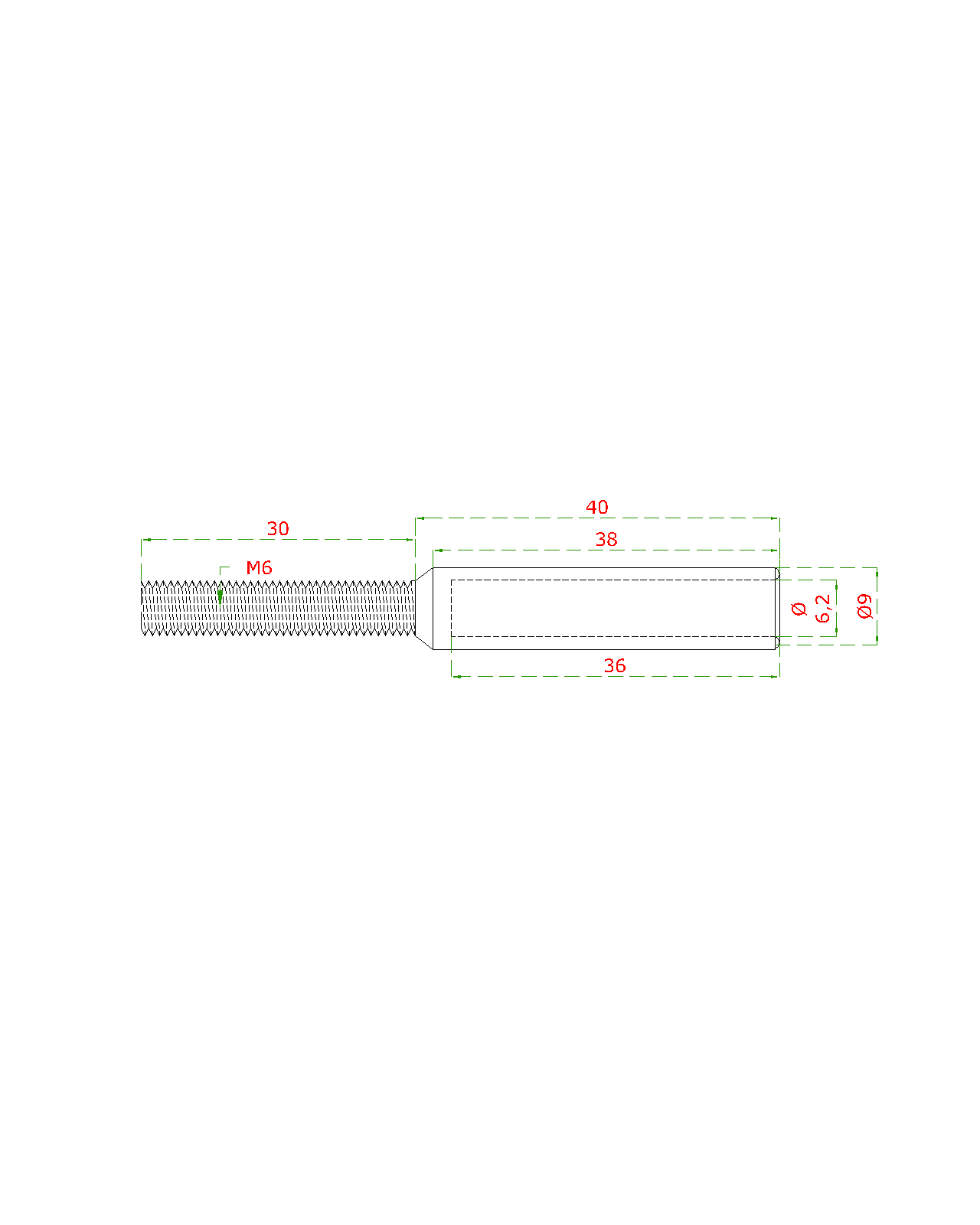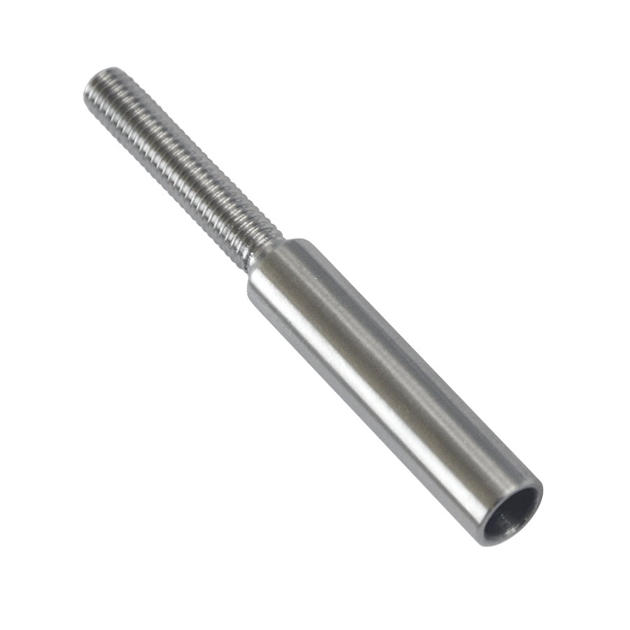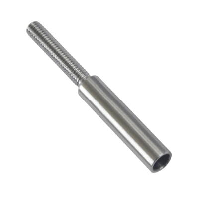 Lepící úchyt pro nerezové lanko ø 4, 5, 6 mm s vnějším pravotočivým závitem, délka 70 a 100 mm, broušená nerez K320 / AISI316. Doporučujeme použít lepidlo MD-GEL454.