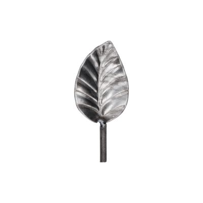 5-110 - kovaný polotovar s motivem listu, rozměr 48 x 32 mm, tl. 1 mm, stopka 22 mm, bez povrchové úpravy.