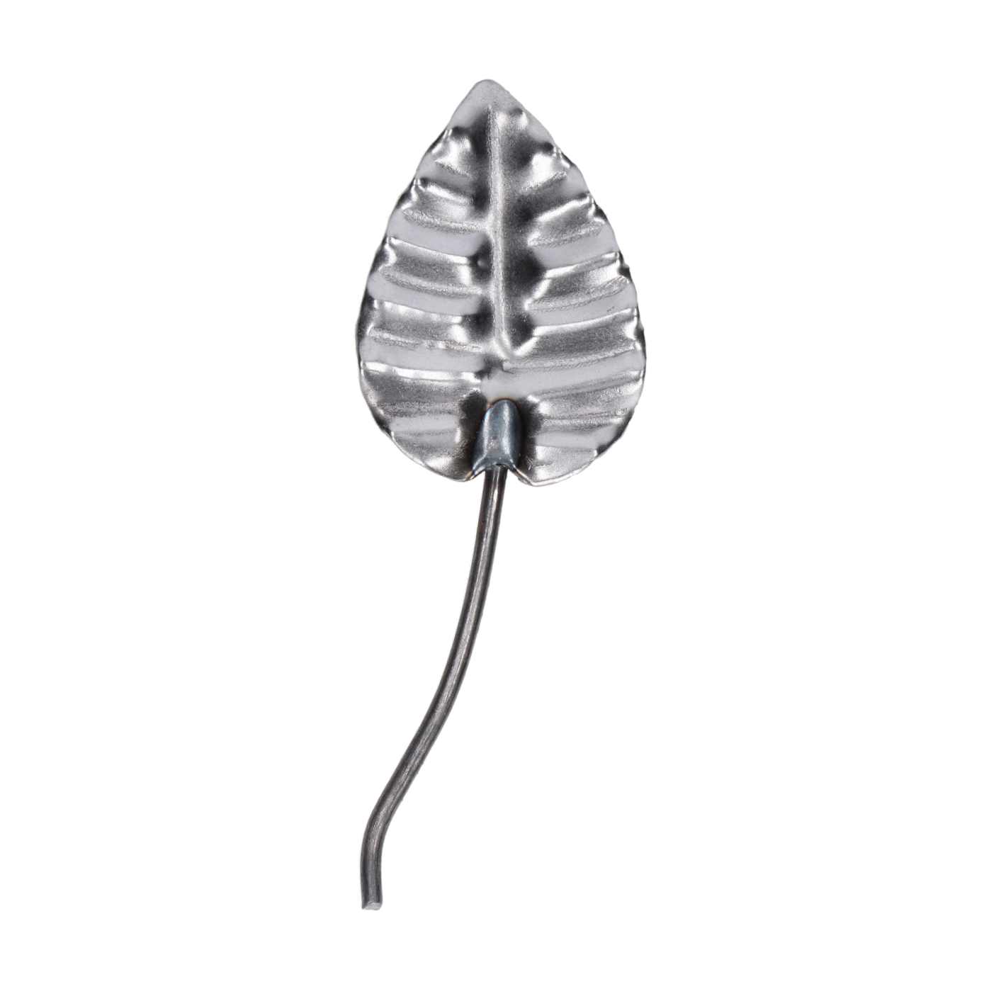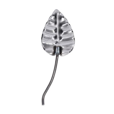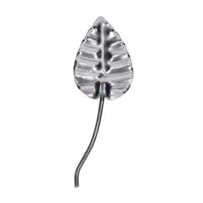 Kovaný polotovar s motivem listu, rozměr 50 x 35 mm, plech tl. 1,5 mm. Celková délka 104 mm.