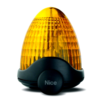 LUCY24 - výstražný maják Nice 24V, žárovka 25W, IP34, bez antény. Odolný proti vodě, nárazuvzdorný s polykarbonátovým krytem, určený pro svislou montáž.