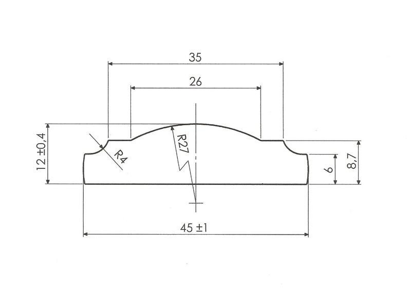 CT45x12 - válcovaný madlový profil 45 x 12 mm, bez povrchové úpravy.