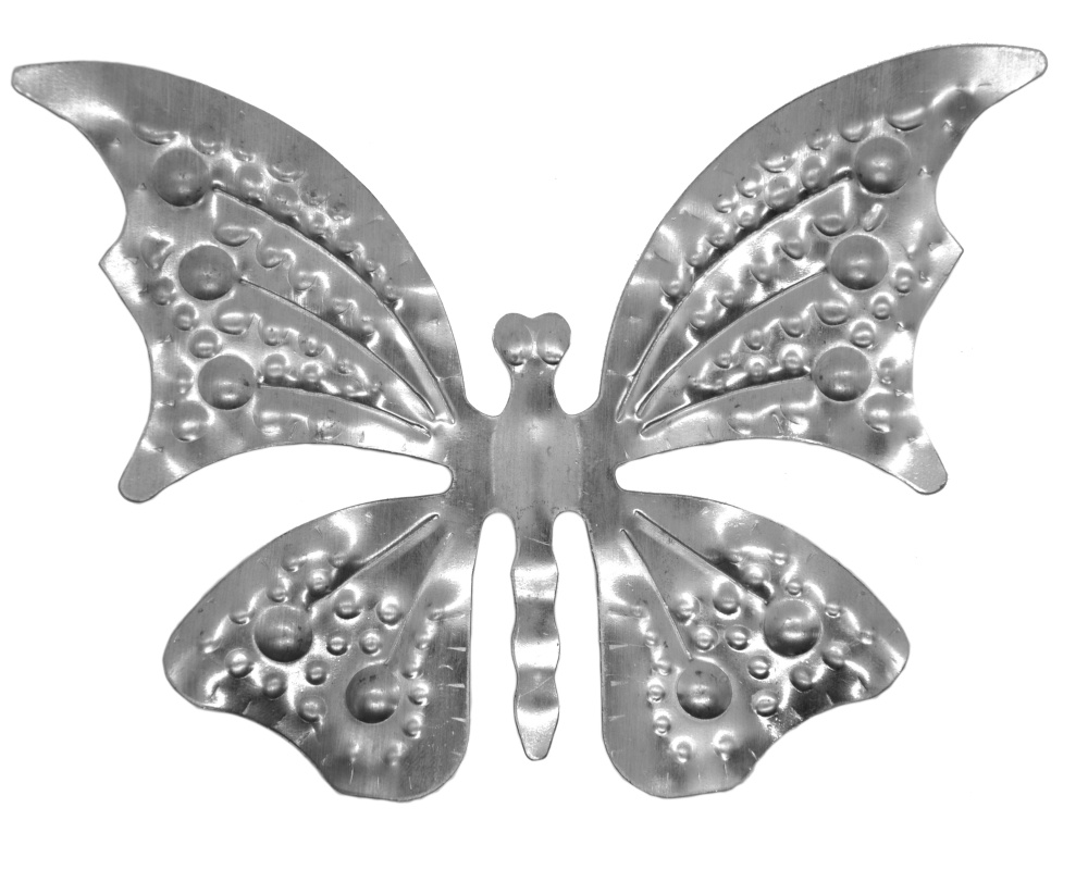 MT17 - dekorační element - motýl, 125 x 175 x 1 mm, plechový výlisek, bez povrchové úpravy.