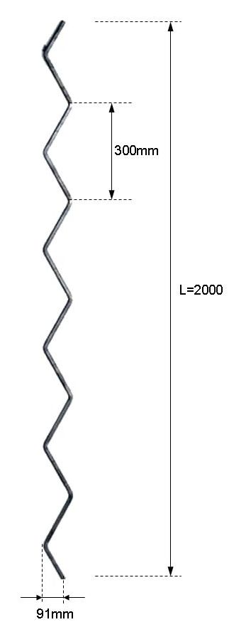ZLU12 - mřížová výplň hladká, rozměr 2000 x 300 x 91 mm, materiál 12 x 12 mm, hmotnost 2,6 kg.