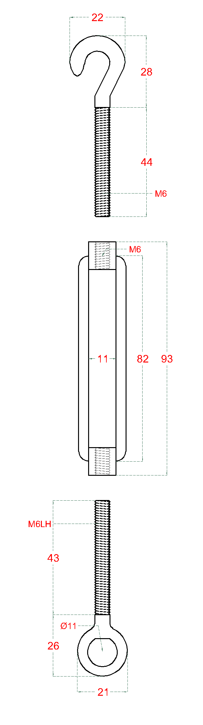 E2-LMM6 - šponovák nerezového lanka se závitem M6 a LH6, broušená nerez K320 /AISI316.