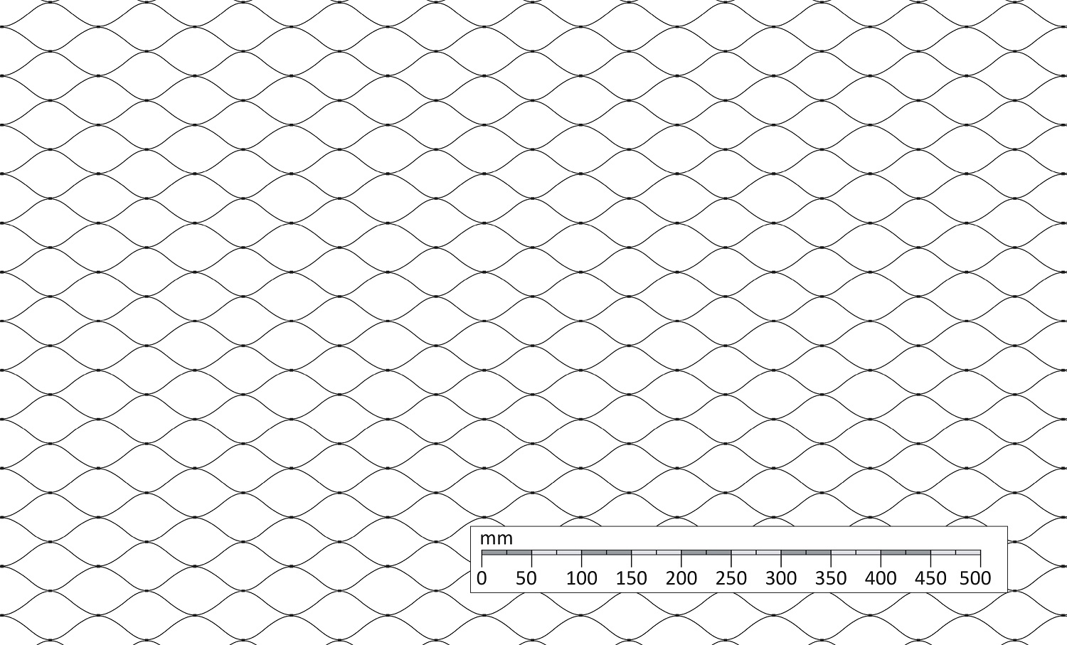 Nerezová lanková výplň, šířka 0,8 m, délka 10 m, oko 60 x 104 mm, průměr lanka 2 mm, materiál nerez AISI304. Barva černá (chemical agent resistant coating). Délka sítě v nerozloženém stavu 11,92 m.