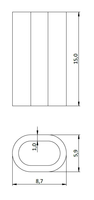 Lisovací spojka pro napojení lankových sítí o průměru lanka 2 mm, délka spojky 15 mm, materiál nerez AISI 316.