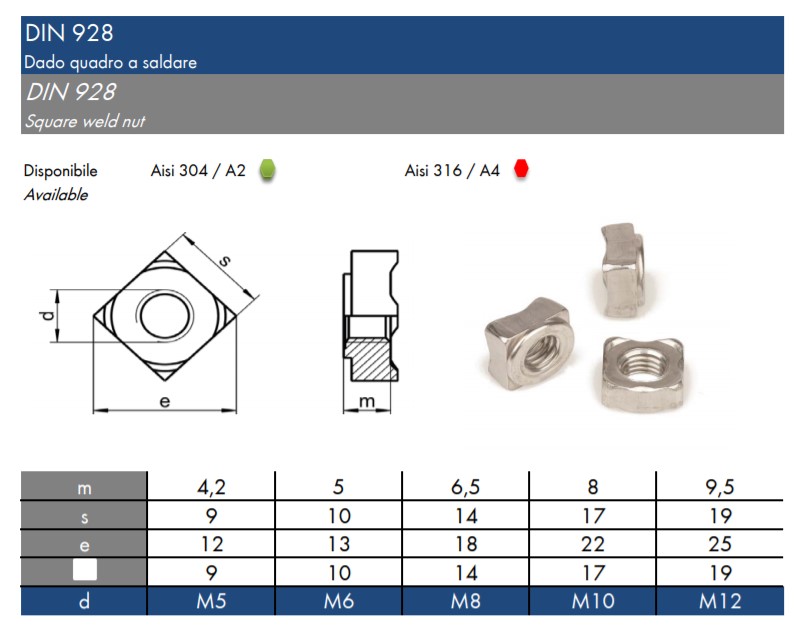 Nerezová matice navařitelná M6 - M12, DIN928/A2 /AISI304, montáž MIG/TIG. Navařovací matice slouží k bodovému přivařování - mají vystouplé navařovací body, kterými se matice přivaří k podkladu.