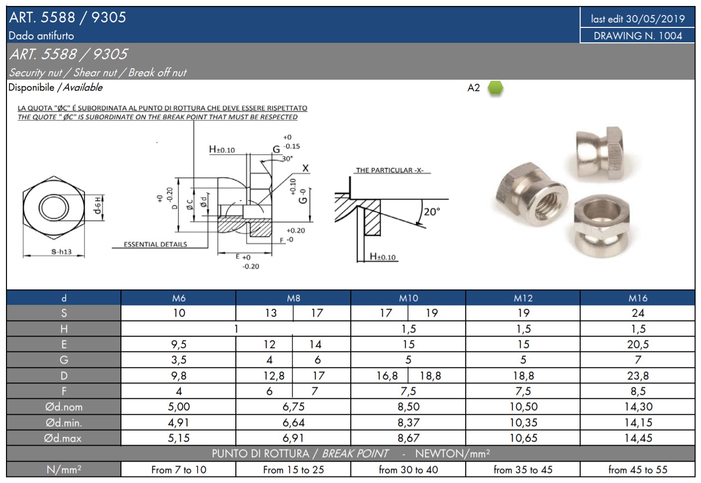 Více variantNerezová trhací matice, AISI304, závit M6 - M16.