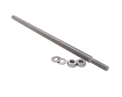 Nerezová závitová redukce M14 a M10 včetně nerezových matic M10 a podložek.
