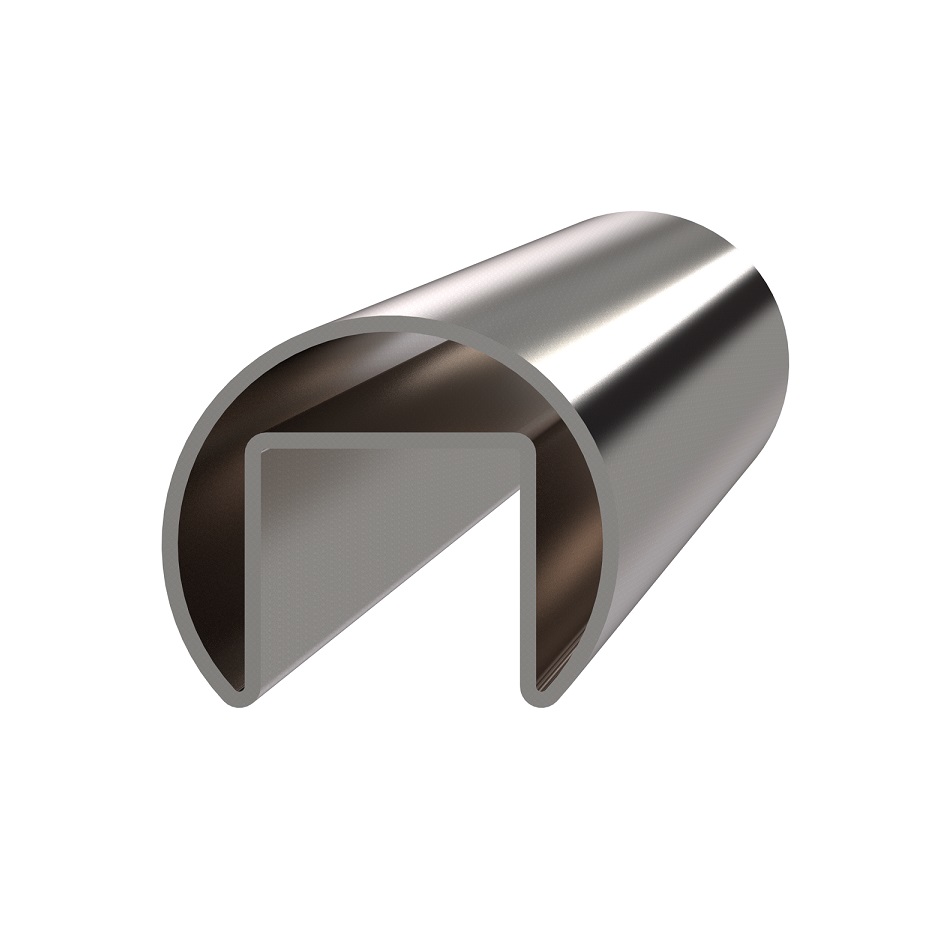 Nerezové kruhové madlo ø 42,4 mm, tl. 2 mm, spodní část 24 x 24 mm, otvor pro LED světlo nebo sklo 8 - 17,5 mm, materiál broušená nerez K320/AISI304. Prodej v délkách 1, 2, 3, 4, 5 a 6 m, uvedená cena je za 1 kus.