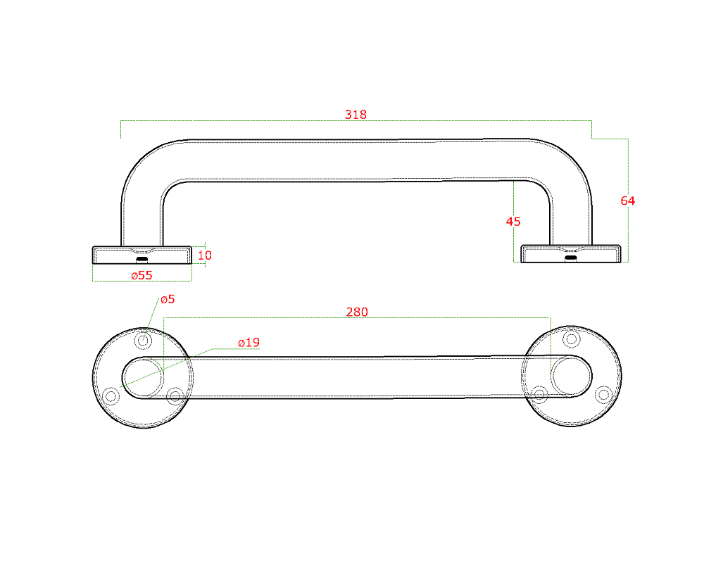EB1-KMA31 - nerezové madlo, délka 318 mm, výška 64 mm, ø 19mm, materiál broušená nerez K320 /AISI304...Ukaž celý popis >