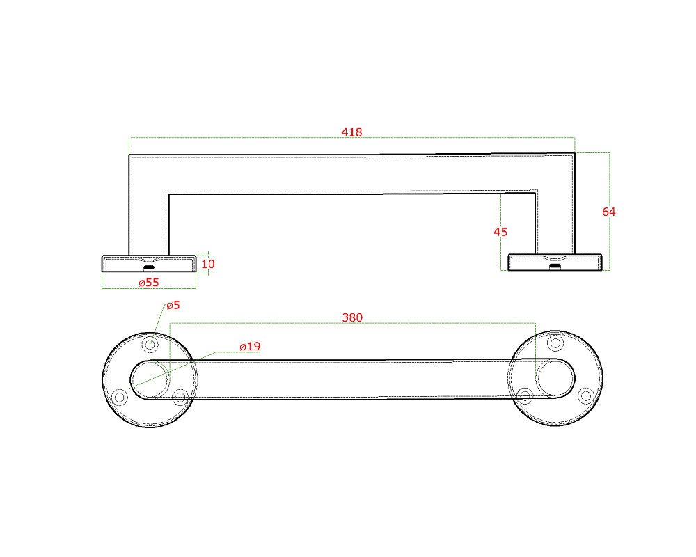 EB1-KMA43 - nerezové madlo, délka 418 mm, výška 64 mm, ø 19mm, materiál broušená nerez K320 /AISI304...Ukaž celý popis >