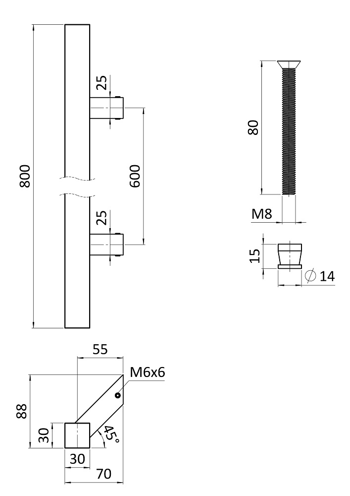 Nerezové oboustranné madlo s úhlem 45° je praktickým a elegantním řešením pro interiérové i exteriérové dveře. Díky oboustrannému provedení umožňuje pohodlné otevírání a zavírání z obou stran. Je vyrobené z kvalitní nerezové oceli AISI 304, která se vyznačuje vysokou odolností vůči korozi, vlhkosti a mechanickému namáhání. Díky tomu je vhodné i do frekventovaných prostorů, kde je kladený důraz na dlouhou životnost a snadnou údržbu. Délka madla 800 mm poskytuje pohodlné uchopení, přičemž ergonomické zkosení pod úhlem 45° usnadňuje manipulaci s dveřmi.