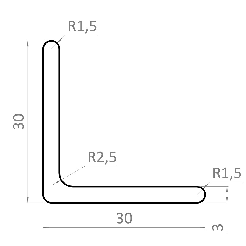 nerezový L profil 30 x 30 x 3 mm