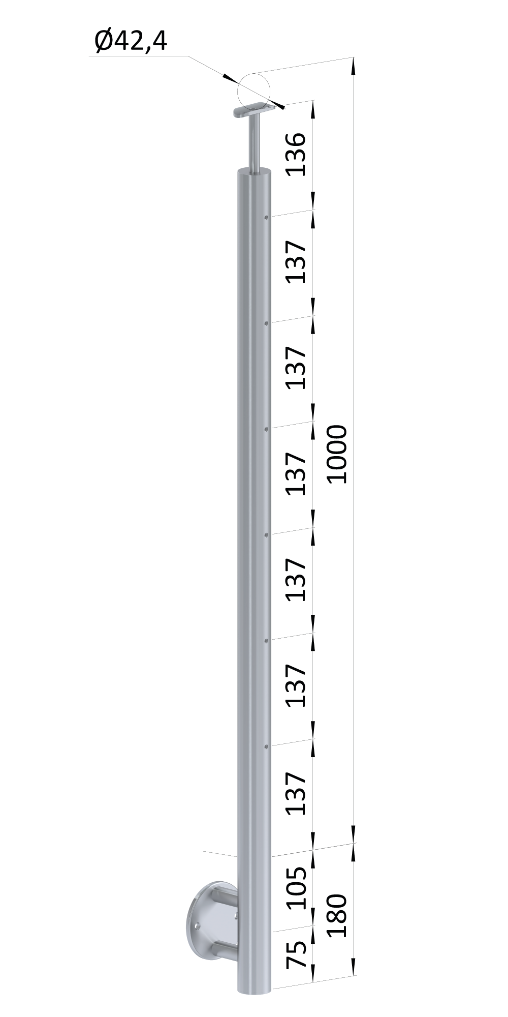 Nerezový sloupek zábradlí ø 42,4 mm, síla stěny 2 mm, materiál broušená nerez K320/AISI304.