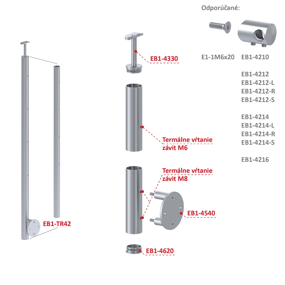 Součástí sloupku je navařená příruba pro boční kotvení, krytka a držák madla. Dodávka neobsahuje kotevní materiál.