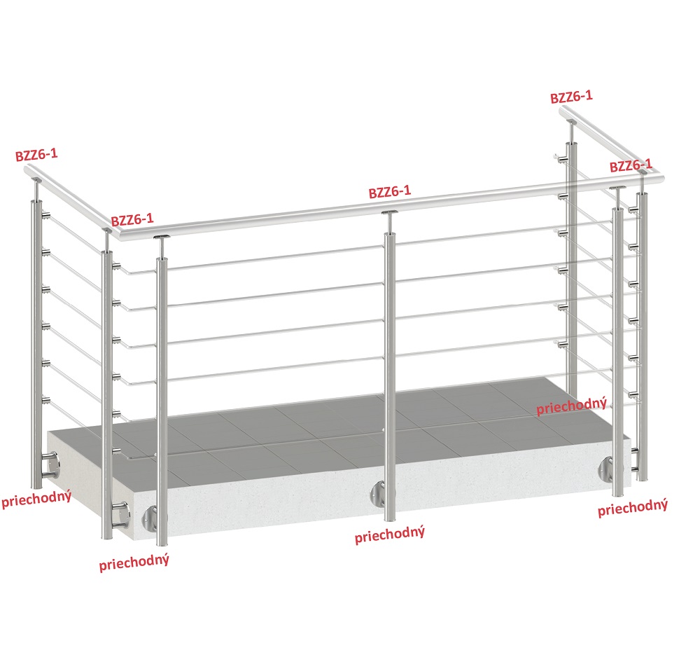 EUROBYT-CB / NEREZOVÉ ZÁBRADLÍ A MADLA / Nerezové sloupky / Sloupky, broušená nerez 304 / Boční kotvení / Boční kotvení - bez výplně / nerezový sloupek bez výplně, broušená nerez