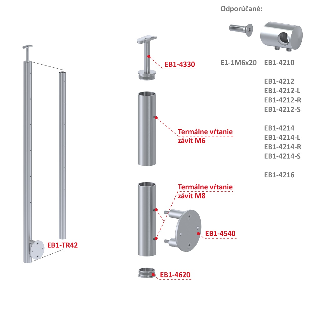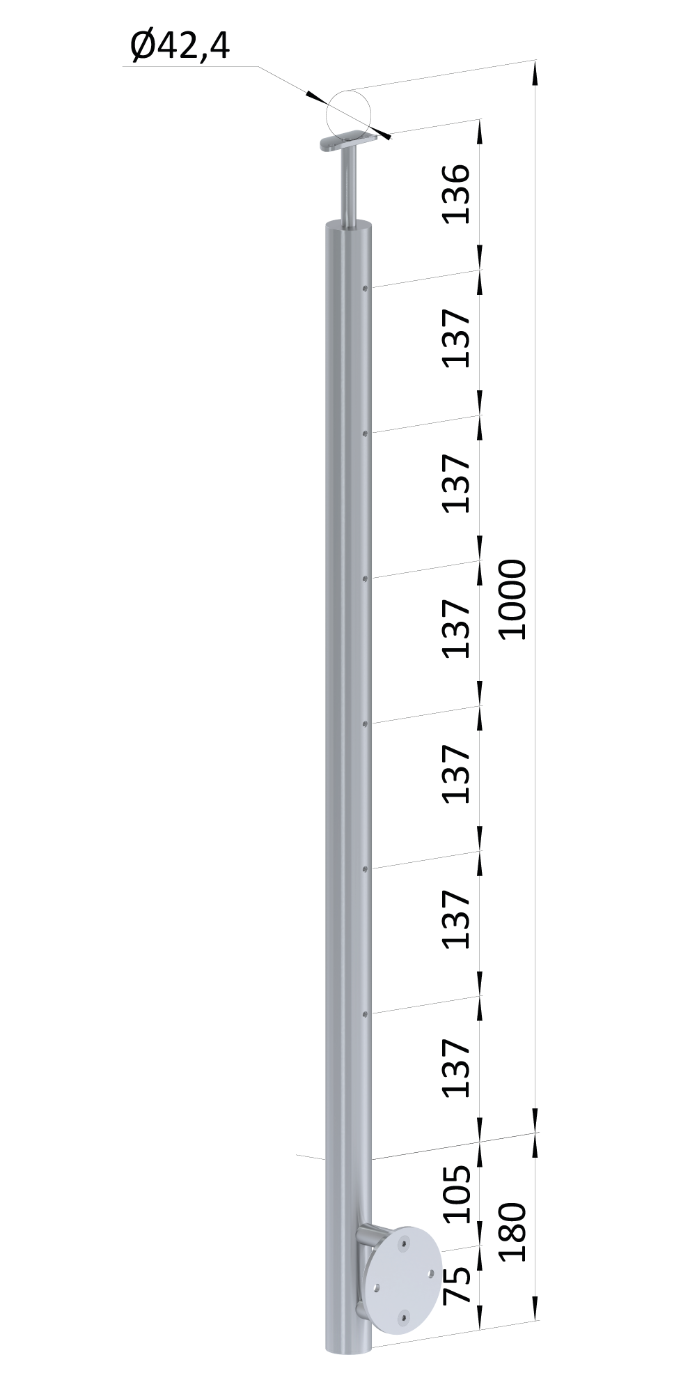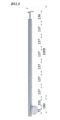 Součástí sloupku je navařená příruba pro boční kotvení, krytka a držák madla. Dodávka neobsahuje kotevní materiál.