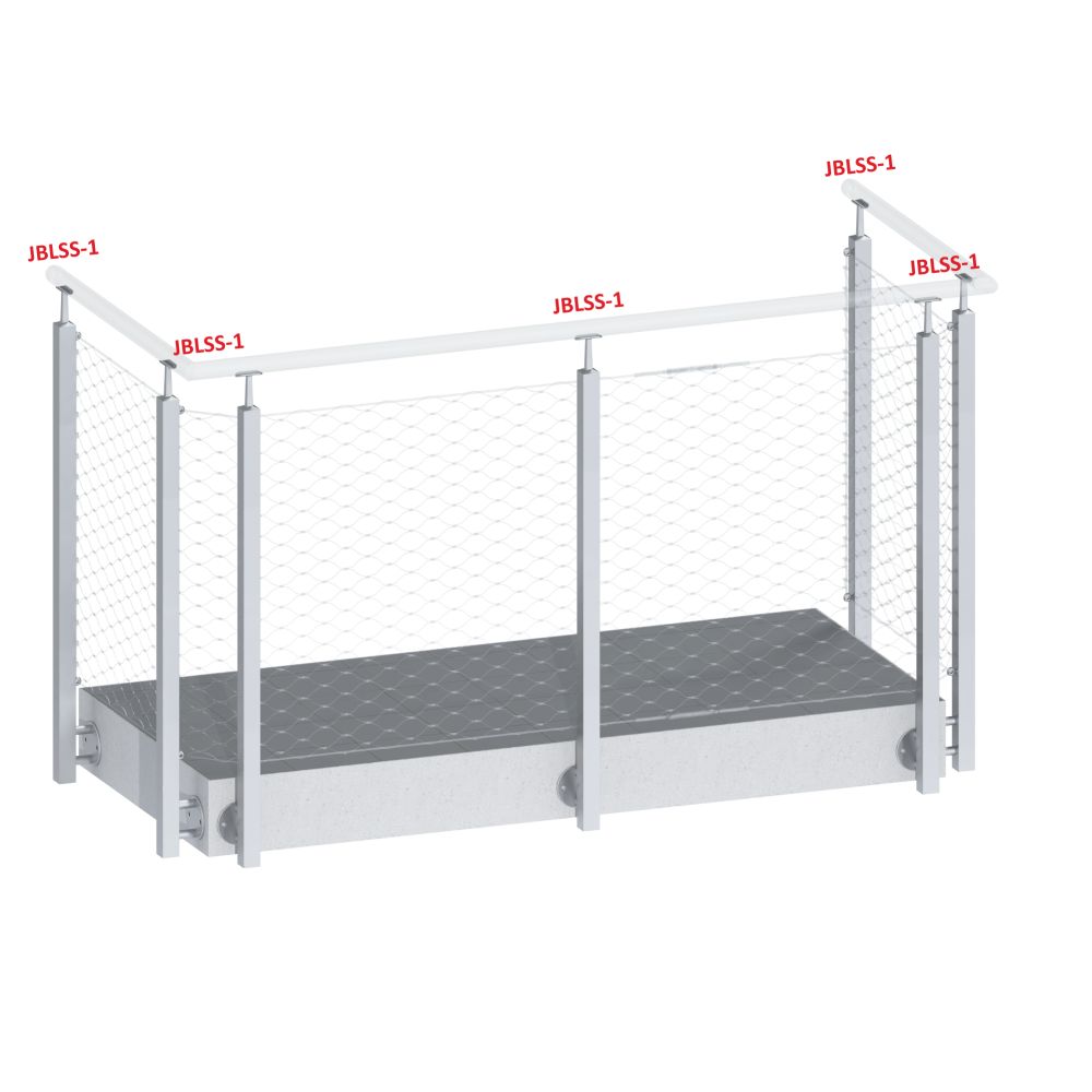 EUROBYT-CB / NEREZOVÉ ZÁBRADLÍ A MADLA / Nerezové sloupky / Sloupky, broušená nerez 304 / Boční kotvení / Boční kotvení - výplň síť / nerezový sloupek hranatý, boční montáž, pro síť
