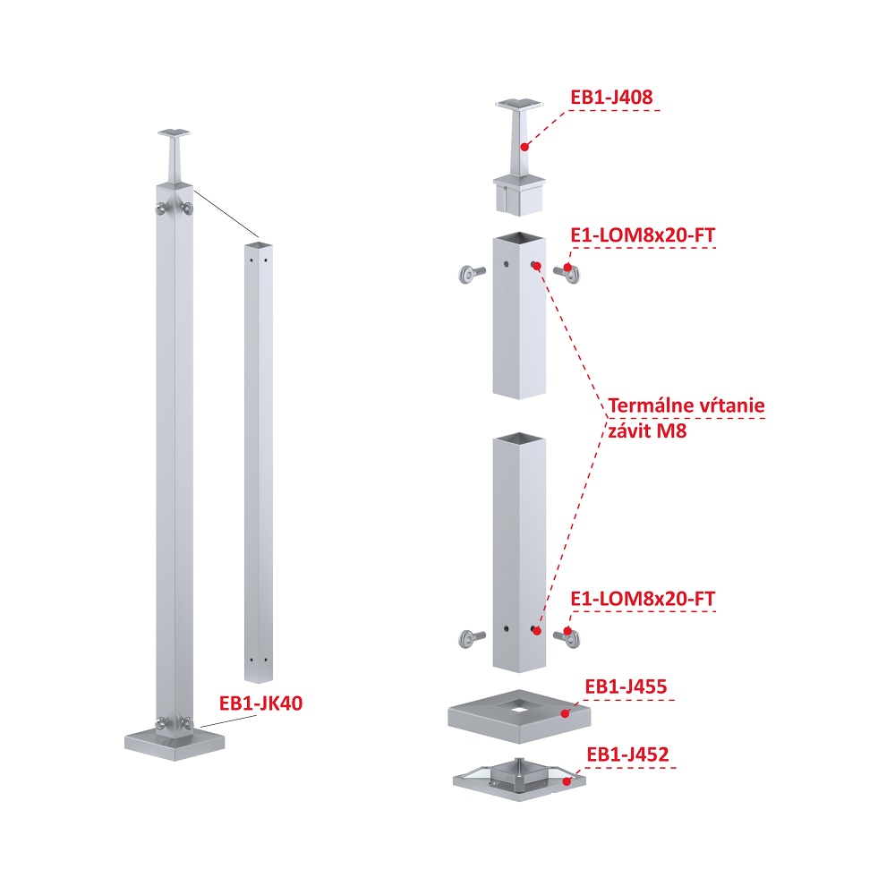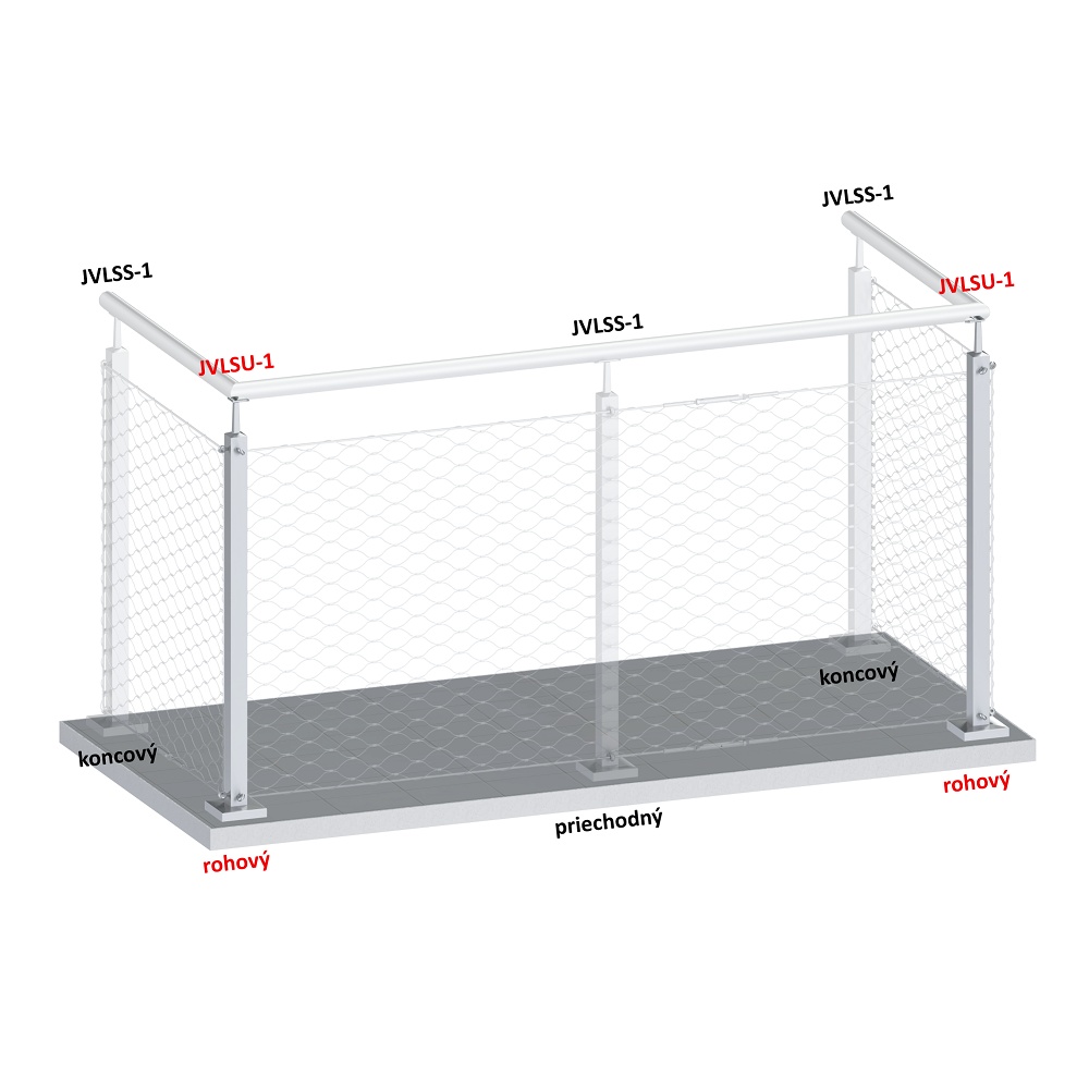 Nerezový sloupek zábradlí hranatý s horním kotvením určený pro výplň z lankové sítě - 4 x úchyt LOM8...Ukaž celý popis >