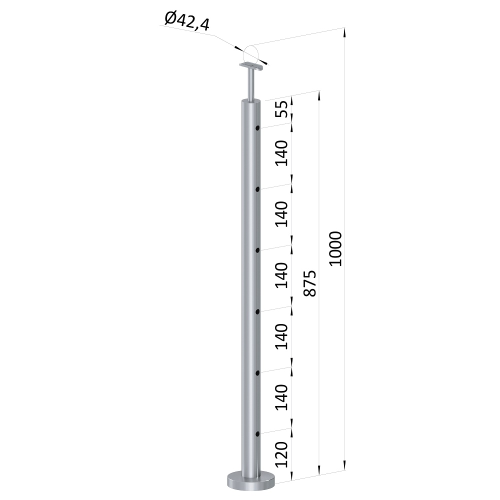 Nerezový sloupek zábradlí ø 42,4 mm, síla stěny 2 mm, materiál broušená nerez K320/AISI304.