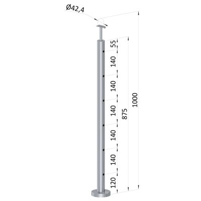Nerezový sloupek zábradlí ø 42,4 mm, síla stěny 2 mm, materiál broušená nerez K320/AISI304. ho...Ukaž celý popis >