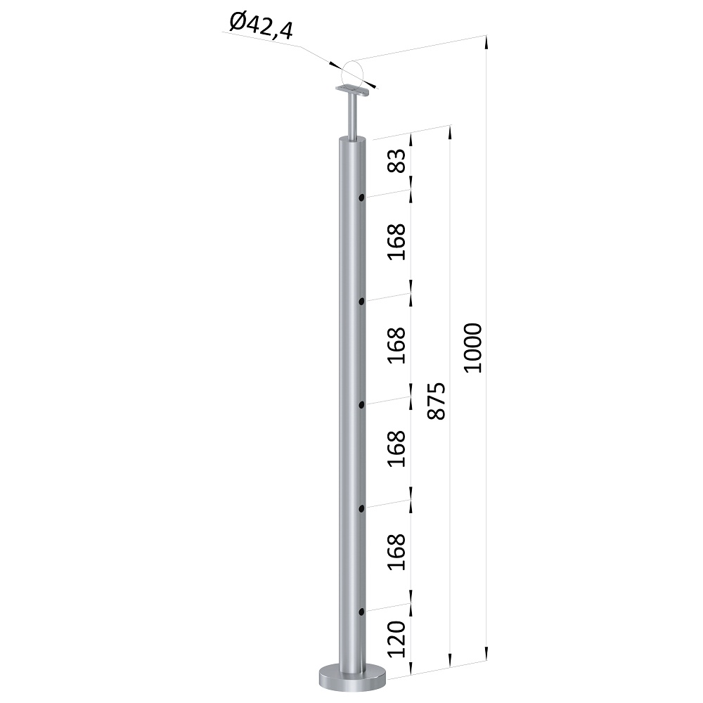 Nerezový sloupek zábradlí ø 42,4 mm, síla stěny 2 mm, materiál broušená nerez K320/AISI304. ho...Ukaž celý popis >