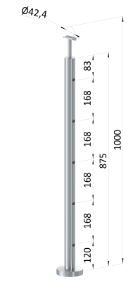 Nerezový sloupek zábradlí ø 42,4 mm, síla stěny 2 mm, materiál broušená nerez K320/AISI304.