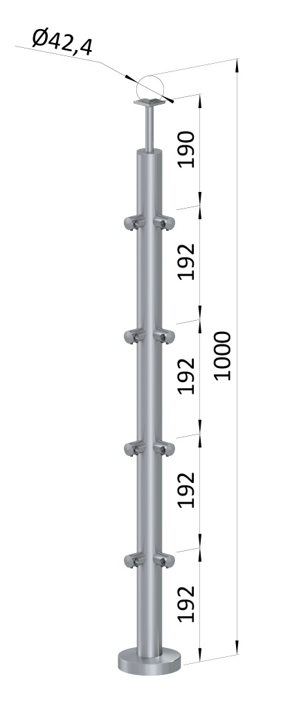 Nerezový sloupek zábradlí ø 42,4 mm, síla stěny 2 mm, materiál broušená nerez K320/AISI304.