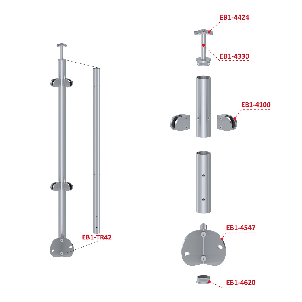 EB1-BSU-1 - nerezový sloupek zábradlí s bočním kotvením určený pro rovné plochy, ø 42,4 mm, síla stě...Ukaž celý popis >