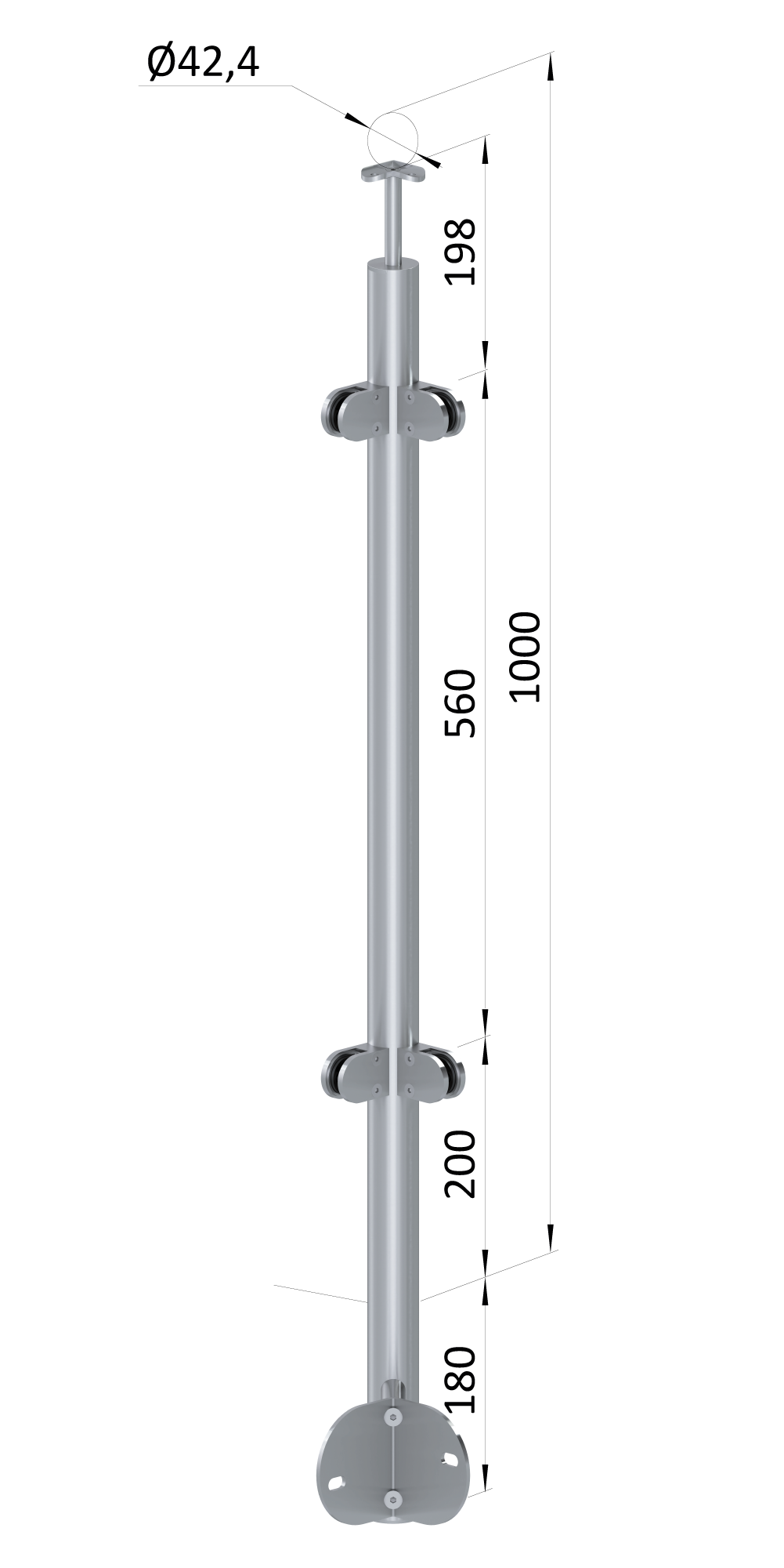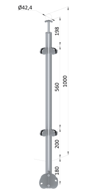 EB1-BSU-1 - nerezový sloupek zábradlí s bočním kotvením určený pro rovné plochy, ø 42,4 mm, síla stěny 2 mm, materiál broušená nerez K320/AISI304.