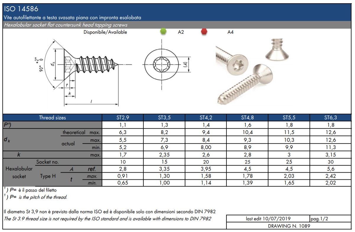 Nerezový vrut samořezný 3,5 x 19 mm, zapuštěná hlava, DIN7982TX/A2/AISI304. ...Ukaž celý popis >