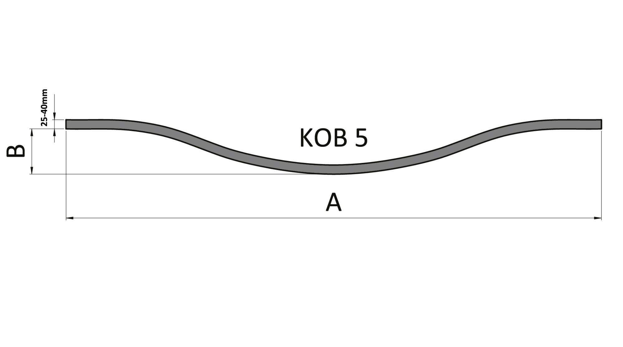 - rozměr B (výška oblouku): 150, 200, 250 mm